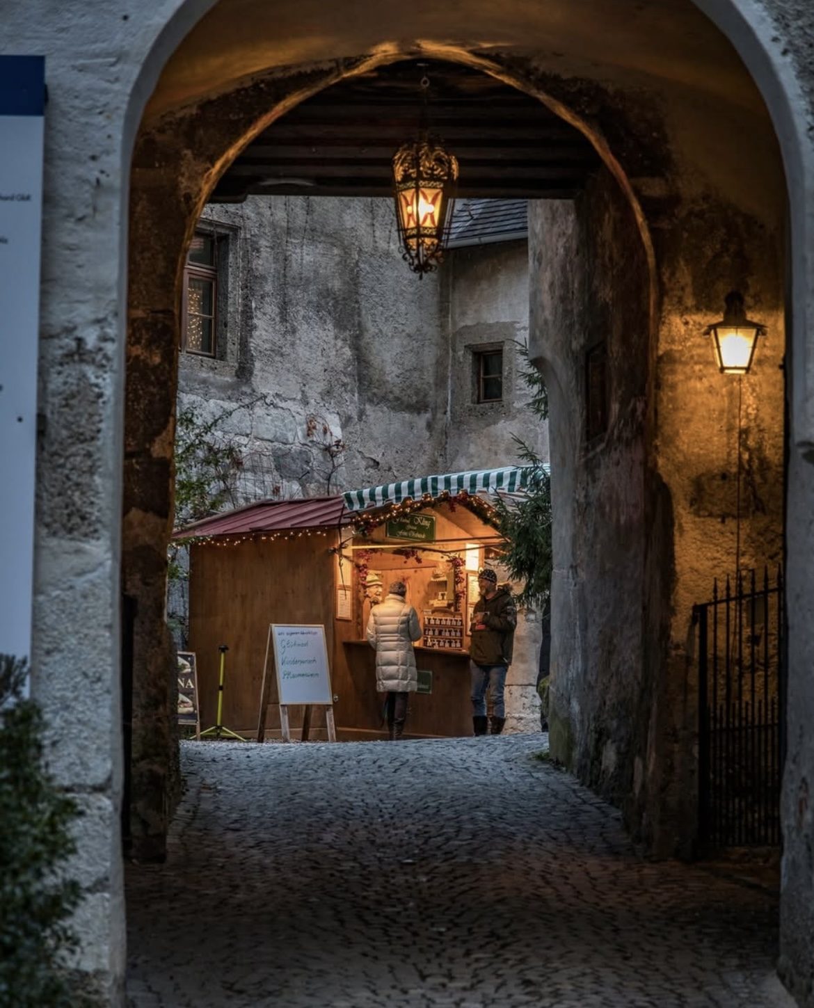 Ein besonderer Höhepunkt ist der Burgadvent auf der Burg Gruttenstein. In der historischen Kulisse über der Stadt laden Fackeln, Kerzenlicht und leise Musik zu einem märchenhaften Abend ein. Handwerk, Kulinarik und der Blick über das Lichtermeer der Alpenstadt machen den Besuch zu einem unvergesslichen Erlebnis.